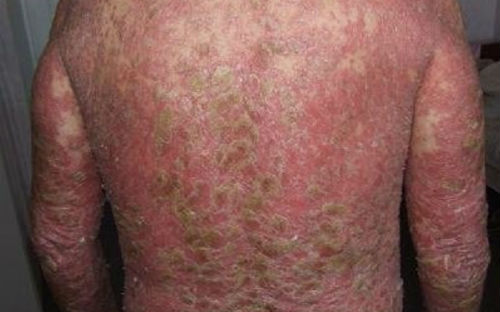Liječenje koje su mi ljekari prepisali pomoglo je samo neko vrijeme. Pogoršanja su se javljala svakih nekoliko mjeseci, koža se upalila, pojavile su se pukotine, plikovi su se spojili i pretvorili u čvrstu crvenu koru.